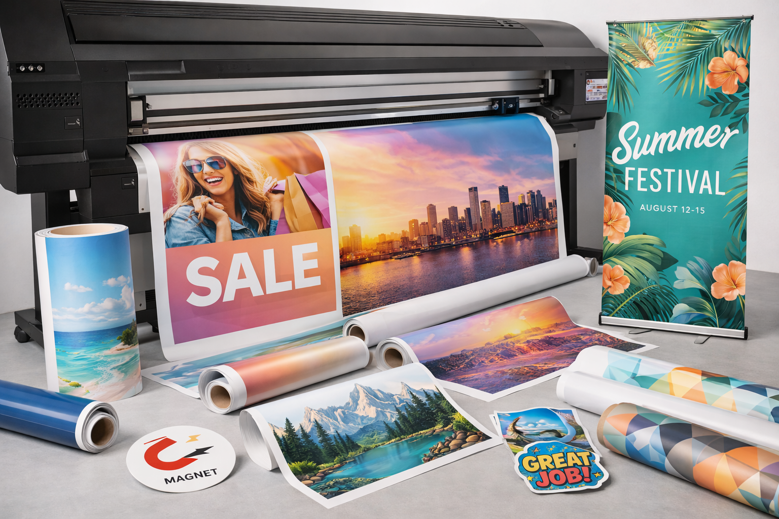From posters and banners to signage and display graphics, we offer durable, vibrant solutions for both indoor and outdoor use — perfect for events, promotions, and business visibility.