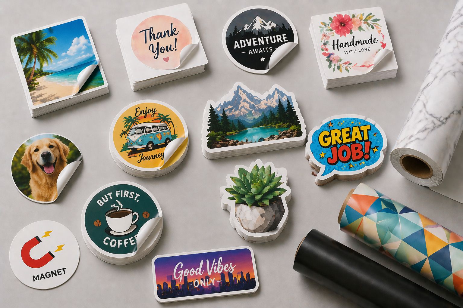 From vibrant die-cut stickers and durable magnets to high-quality vinyl for indoor and outdoor use, we offer a wide range of options that combine creativity, durability, and strong visual impact.